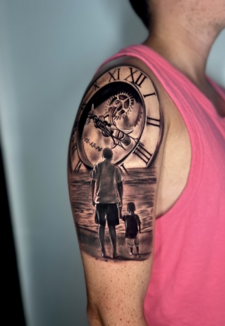 My work has earned accolades at regional and national tattoo expos, including recognition for “Best Portrait Tattoo” and “Best Black & Gray Realism.” But it’s the loyalty of my clients—and the deeply personal pieces I'm trusted to create—that brings me the most joy. I continue to refine my technique with every client, pushing for new levels of realism and connection within each piece.
